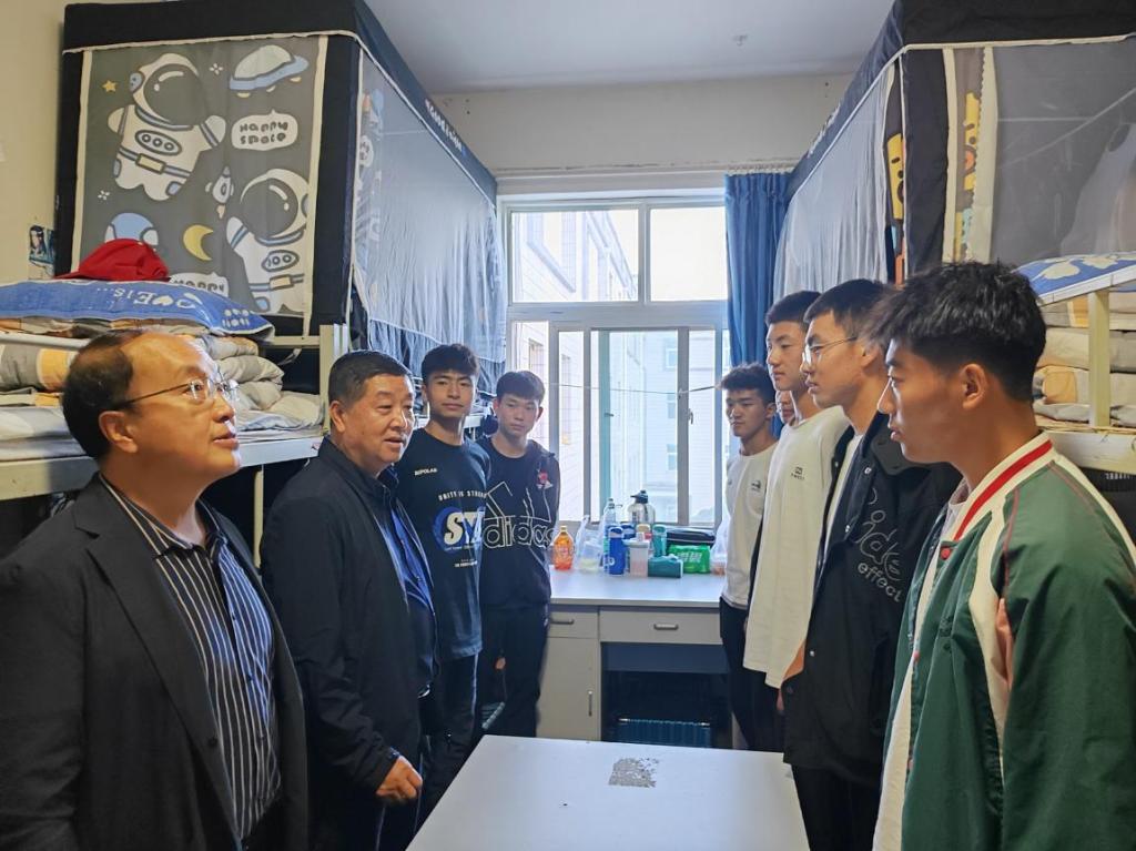 在惠和公寓、惠文公寓,任永峰对学生宿舍安全、纪律、卫生进行检查,详细询问了解新生军训、学习、生活等情况,叮嘱同学们在校期间注意安全,劳逸结合、和睦相处、团结互助,营造一个文明和谐自律的宿舍氛围。他勉励新同学们珍惜大学时光,规划好大学学习生活,尽快完成角色转变,让大学生活过得充实而有意义。(体育与健康学院)