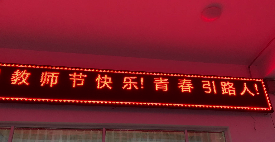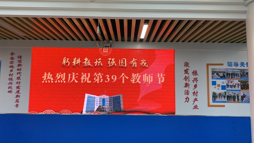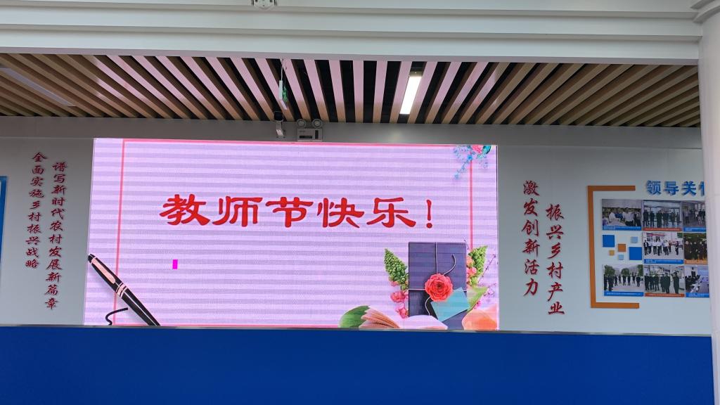 “躬耕教坛,强国有我”“老师,您好”“教师节快乐”“青春引路人”……祝福的话语显示在科技楼、餐厅、电子商务学院等LED屏上,以字幕滚动的方式为教师“亮灯”,表达了全校师生对教师的浓浓祝福和崇高敬意。