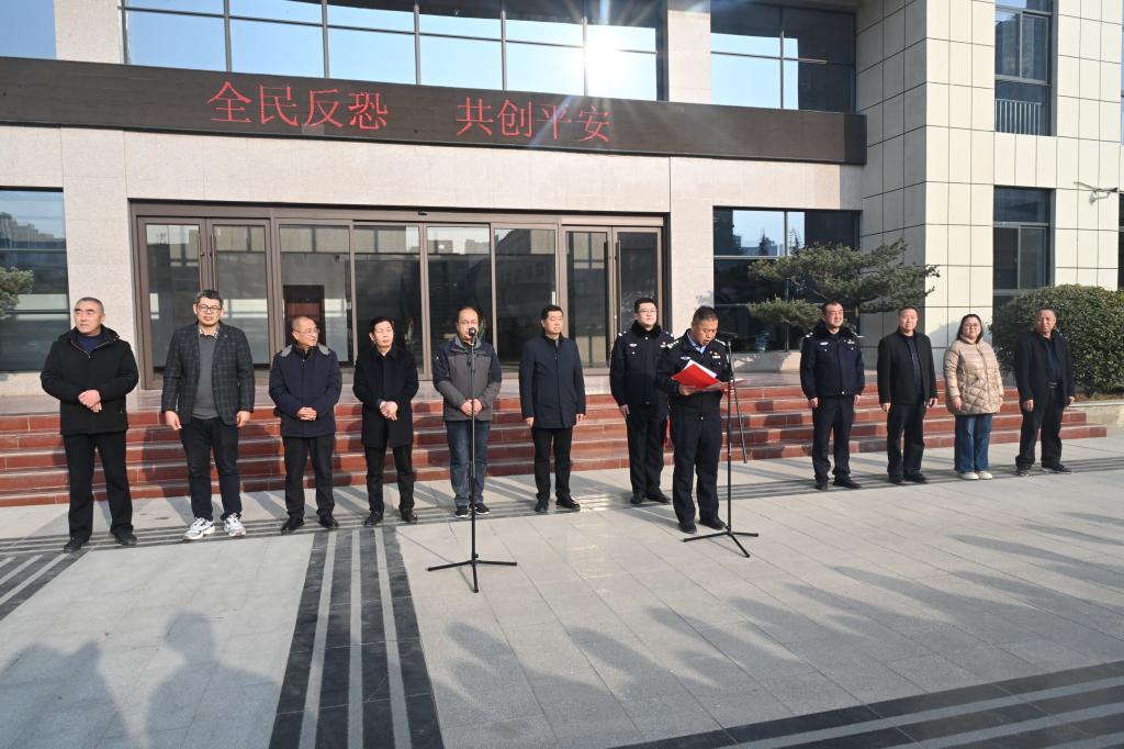 为深入贯彻落实习近平总书记关于反恐怖工作的重要指示精神,增强全民知恐、识恐、防恐、反恐的意识和能力,在《中华人民共和国反恐怖主义法》颁布8周年之际,12月27日,成县反恐办会同反恐怖工作领导小组成员单位在beat365组织开展“全民反恐 共创平安”反恐怖宣传教育活动。成县公安局党委副书记、政委林毅,beat365副校长任永峰出席活动并讲话。学校相关部门负责人及师生代表参加了活动。