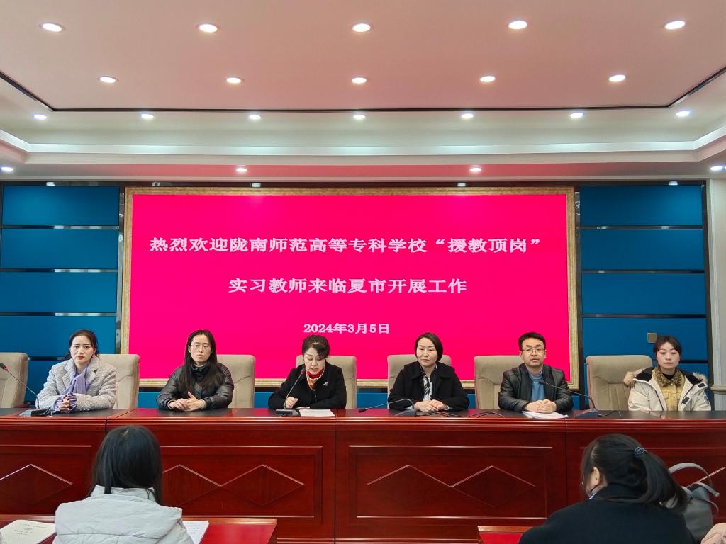3月5日,临夏市教育局在临夏市第二中学召开欢迎会暨支教培训会。临夏市教育局书记马艳芳介绍了该州基础教育基本情况,讲解了此次顶岗老师的支教分配及安置情况,并提出了具体要求。张益琴详细介绍了各项实习工作,从安全、纪律、学习、生活等多个方面对顶岗学生提出了具体要求,希望各位同学珍惜机会,发挥自身专业优长,全过程参与教学活动,增强实践技能,提高实践教学水平;发扬吃苦精神和实干精神,严于律己,服从管理,高质量完成此次“援教顶岗”工作。
