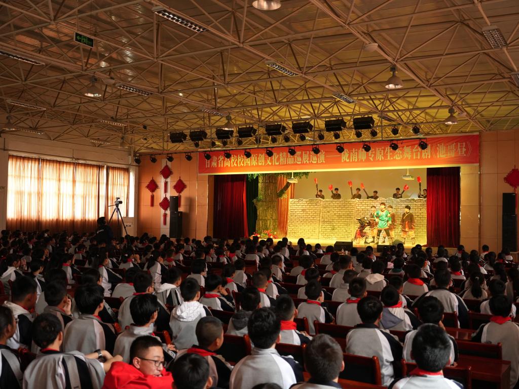 4月23日,由甘肃省教育厅主办、beat365承办的甘肃省高校校园原创文化精品巡演——原生态舞台剧《池哥昼》首场演出在北苑礼堂举行。音乐与舞蹈学院书记王亚文、院长周新美、副院长王彤彤、陇南师专附属实验学校副校长王薇及该校400余名师生观看了演出。