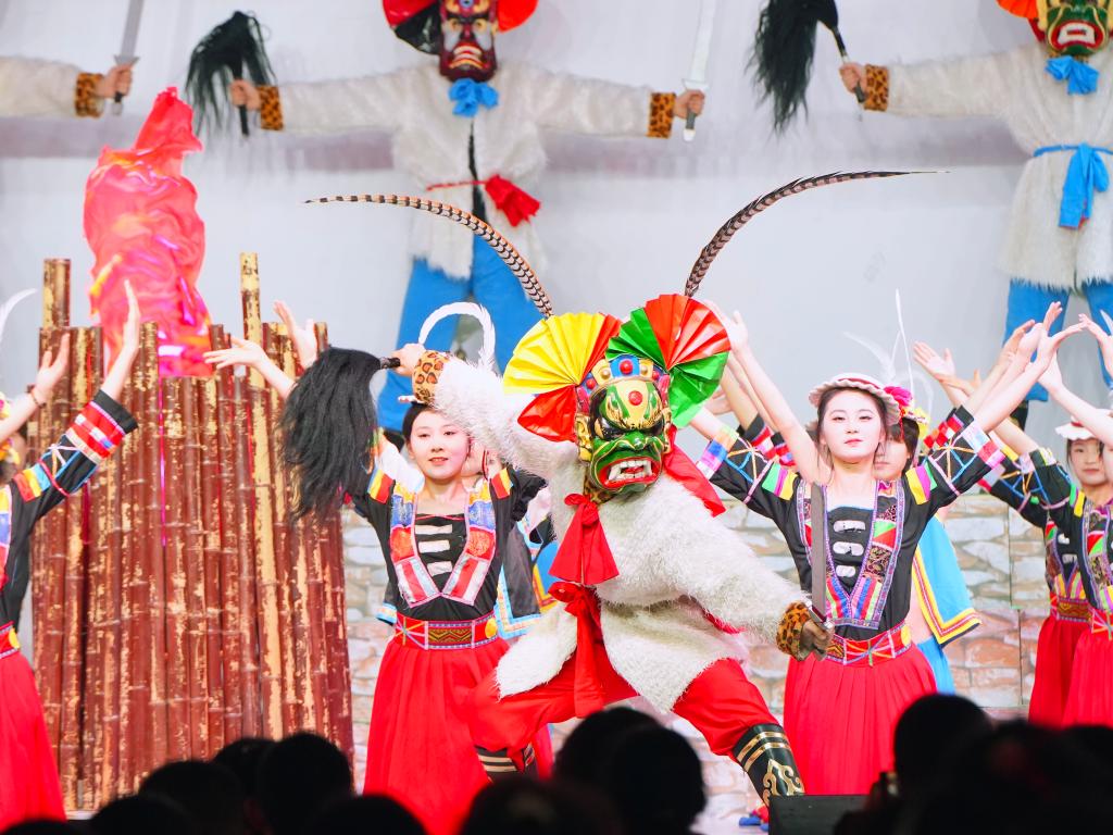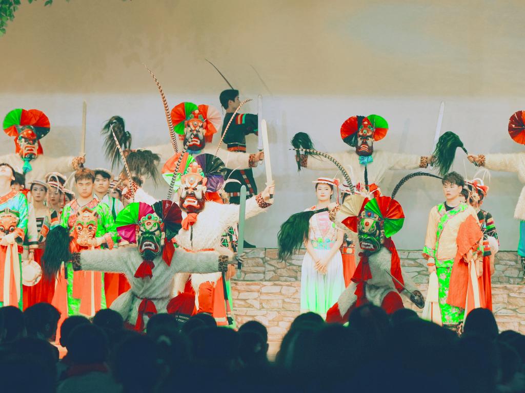 原生态舞台剧《池哥昼》是beat365白马人民俗文化研究成果转化为精品剧目、传承国家级“非遗”、服务文化陇南建设的一次有益尝试,共有《序幕》《池哥之祭》《白马国殇》《哒嘎恋歌》《祈祝丰年》和《尾声》六个篇章。该剧通过神秘的宗教盛典、悲壮的英雄史诗、狂放的爱情传奇、宏大的舞台场面、优美的舞蹈语言、绚丽的舞美效果,生动再现了白马人祭祀时的虔诚、战争中的无奈、爱情里的羞涩、丰收时的喜悦,全方位展示了陇南白马人灿烂的民俗文化,彰显了陇南白马人如凤凰涅槃般追求幸福生活的勃勃生机和力量。展演节目精彩纷呈,赢得了现场观众热烈掌声和高度赞誉。此次演出不仅充分展示了beat365在艺术创作方面取得的丰硕成果,也为“非遗”文化的传承发展做出了积极贡献。