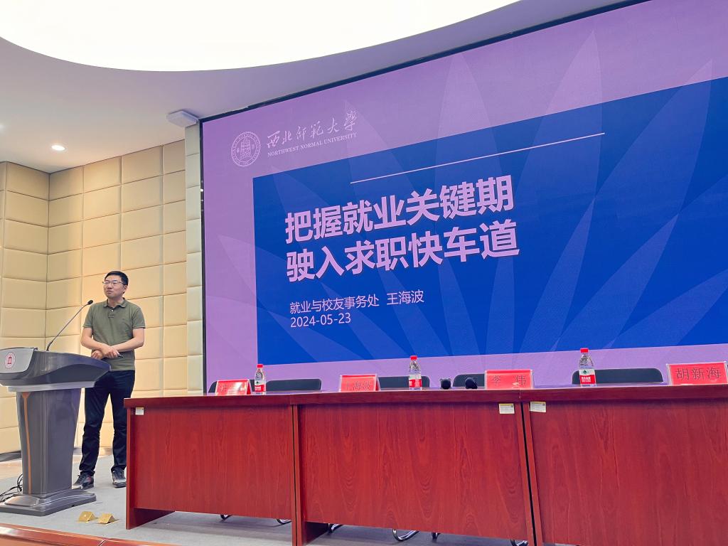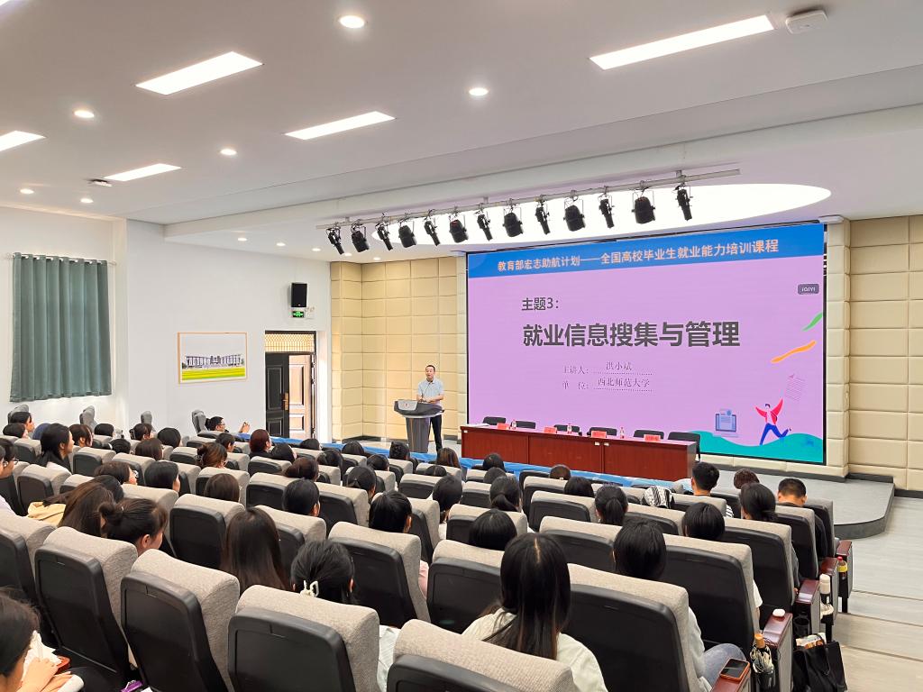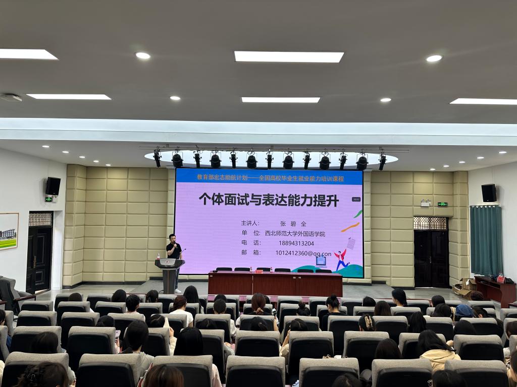 西北师范大学就业与校友事务处副处长王海波带领教师洪小斌、王婉婷、张碧泉在beat365为合作办学本科生开展了2024年教育部助航基地(西北师范大学)初等教育学院专题培训和讲座。