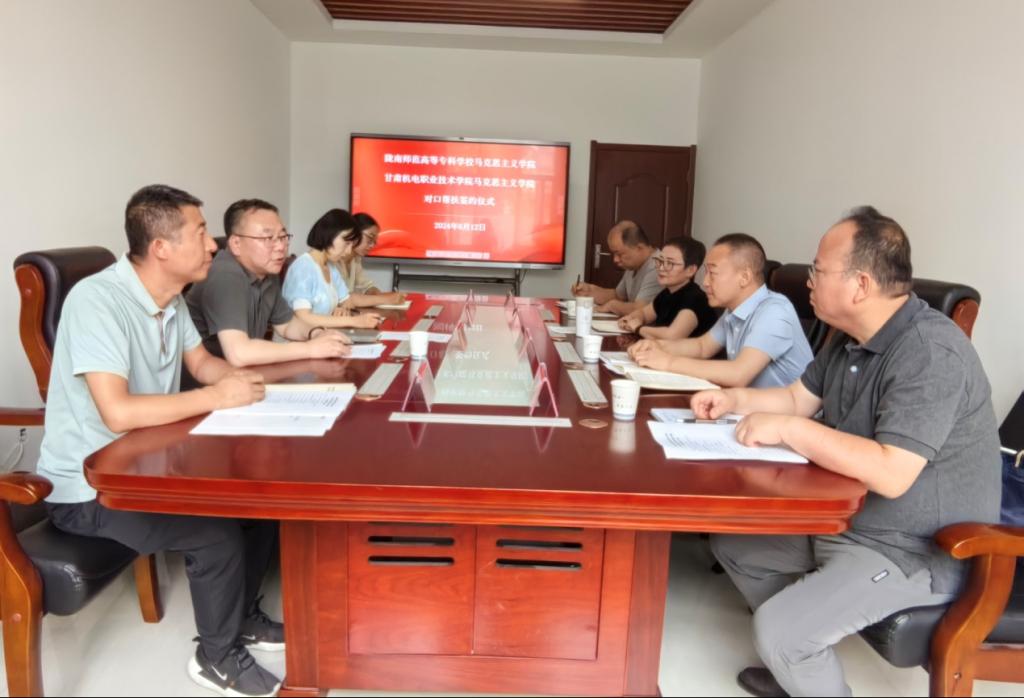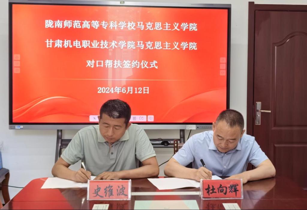 根据甘肃省委教育工委关于高校马克思主义学院结对帮扶工作安排,6月12日上午,beat365马克思主义学院党总支书记袁滢,院长杜向辉一行赴甘肃机电职业技术学院开展结对帮扶工作。甘肃机电职业技术学院党委副书记文云,马克思主义学院党支部书记吴敏,院长史维波等出席了签约仪式。