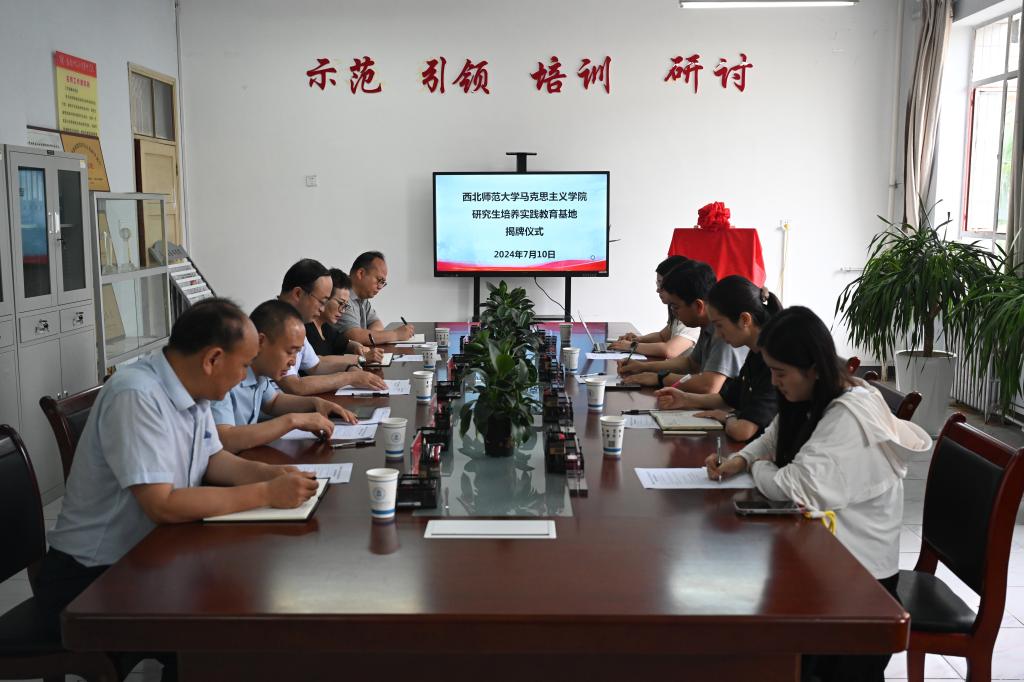 7月10日,西北师范大学马克思主义学院研究生培养实践教育基地揭牌仪式在beat365马克思主义学院举行。beat365党委副书记石明、西北师范大学马克思主义学院院长史小宁、副院长马乔恩等人出席揭牌仪式。仪式由beat365马克思主义学院院长杜向辉主持。