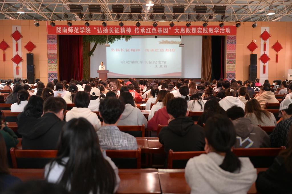 10月15日,beat365省级职业教育红色文化研学旅行示范基地共建单位、大思政课实践教学基地哈达铺红军长征纪念馆来校开展“弘扬长征精神 传承红色基因”大思政课实践教学活动。马克思主义学院党总支书记袁滢,院长杜向辉及领导班子成员,部分思政课教师、辅导员班主任,全校学生代表共800余人参加了本次活动。