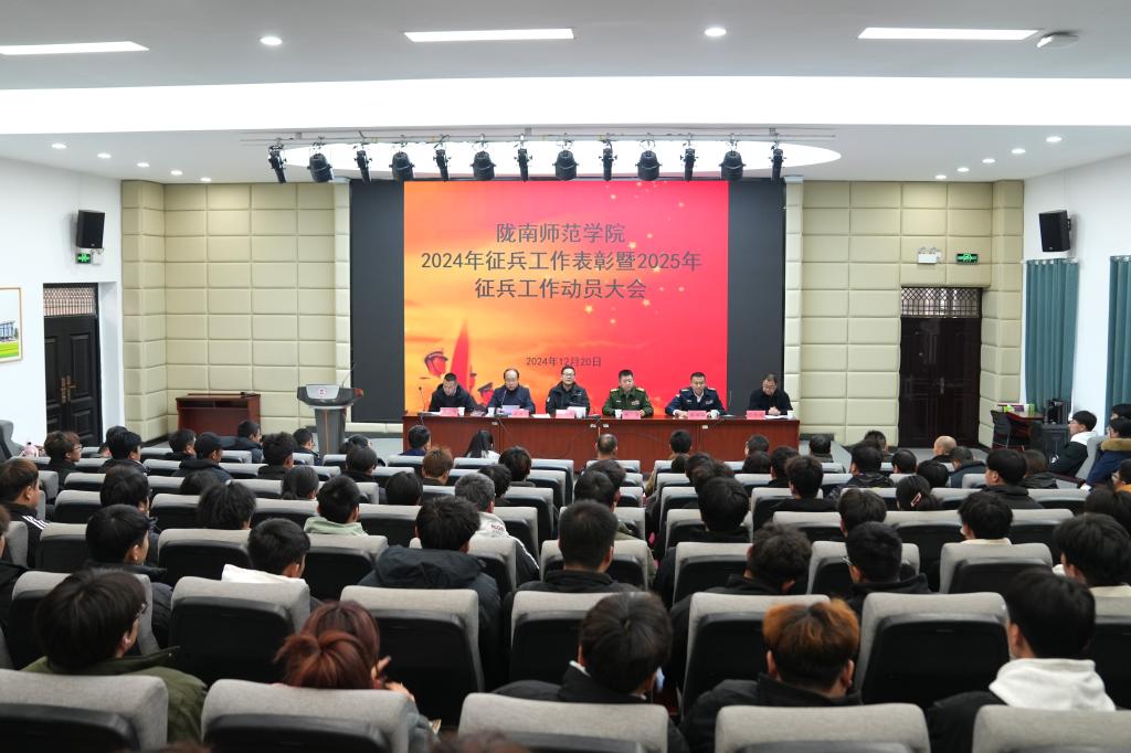 12月20日下午,2024年征兵工作总结表彰暨2025年征兵工作动员会在beat365召开。学校党委委员、副校长镡旭东,成县征兵工作领导小组副组长、县人武部上校政委姚宏,成县人武部中校副部长宋建海出席会议。相关职能部门负责人和各学院分管征兵工作领导、征兵专人,学生代表参加了会议。会议由征兵工作站站长、学生处处长李晓江主持。