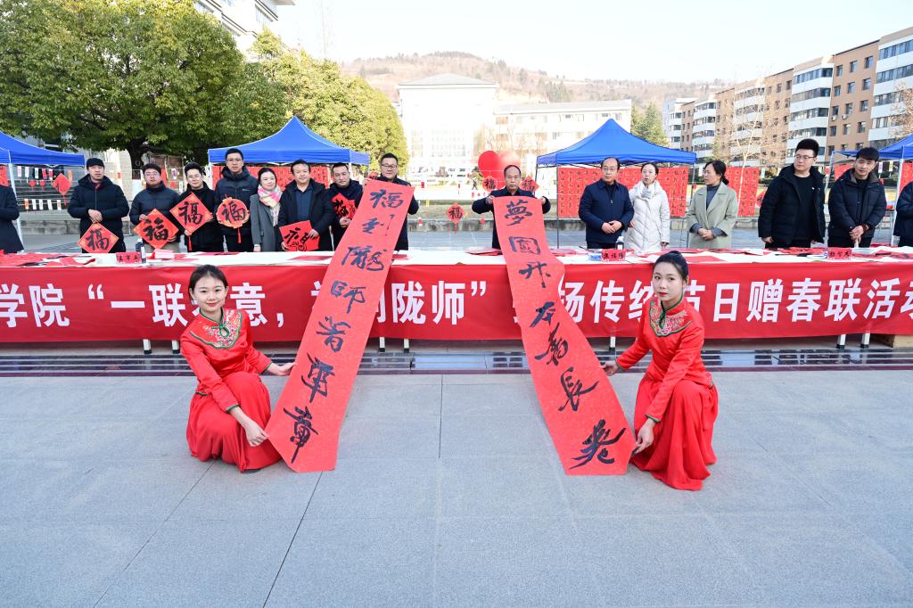 12月31日下午,学校举行“一联春意,福到陇师”赠春联活动。副校长镡旭东,工会、团委、学生处、保卫处负责人,美术与设计学院全体领导班子和100余名师生参加了活动。