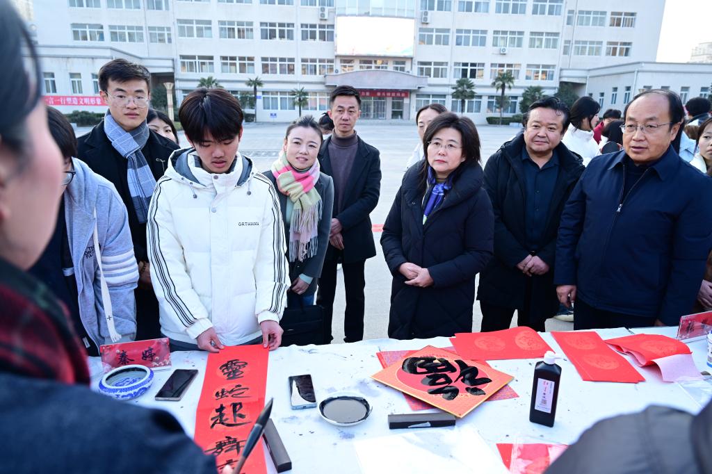 一幅幅大红的春联和一张张大“福”,将浓浓的新春祝福诉诸笔端、送进师生心田,表达了辞旧迎新的美好愿景。
