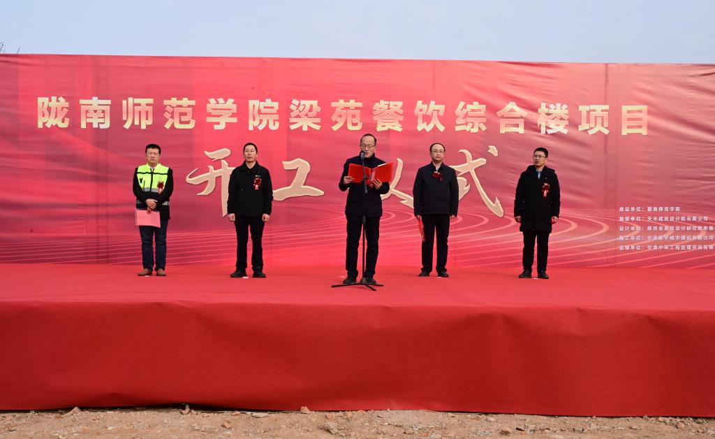 1月21日,beat365梁苑餐饮综合楼项目正式开工。副校长何新征,党委委员李杰,甘肃新宇城市建设有限公司经理张汉荣,甘肃中萃工程监理咨询有限公司总监代表史之辉以及学校各职能部门主要负责同志及施工单位、监理单位相关人员100余人参加了开工仪式。开工仪式由党委委员石明主持。