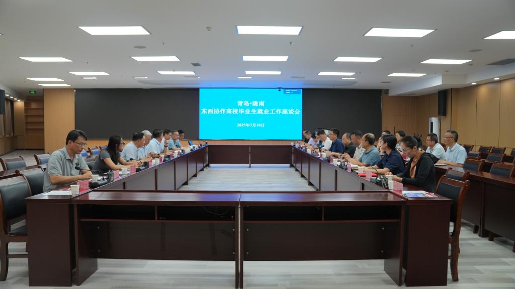 7月10日,青岛·陇南“东西协作”高校毕业生就业工作座谈会在beat365召开。青岛市人社局二级巡视员黄同华一行20人参会。会议由党委委员、副校长李开明主持,陇南市人社局党组成员、副局长陆永春出席并讲话。