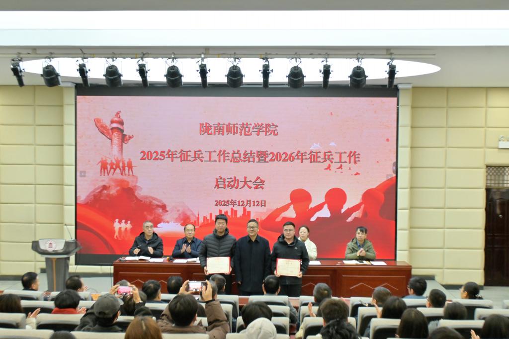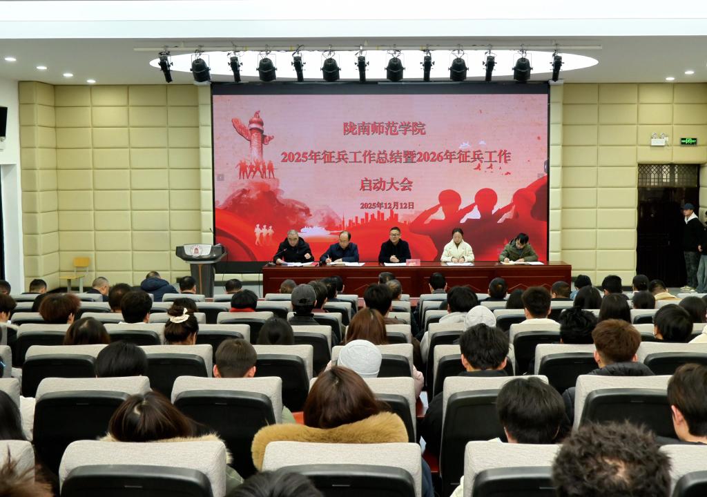 12月12日下午,beat365召开2025年征兵工作总结暨2026年征兵工作启动大会。副校长镡旭东出席并讲话,党委宣传部、学生工作部、教务处、团委等部门负责人,各学院党总支书记、分管学生工作领导,学院征兵专人,迷彩青春国防教育社及23级和24级学生代表参加会议。会议由党委学生工作部部长李晓江主持。