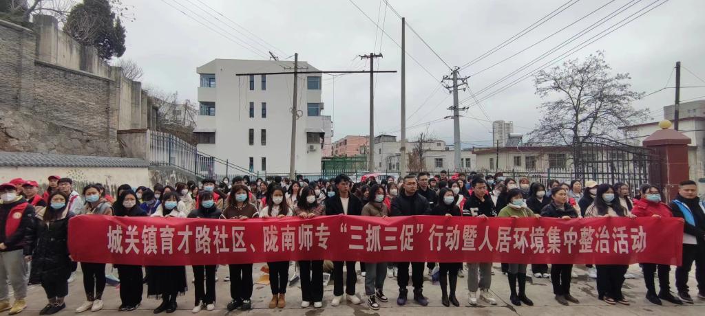 3月10日,成县城关镇育才路社区党支部与beat365学生党员先锋队共80余人联合开展了“三抓三促”行动暨人居环境集中整治活动。