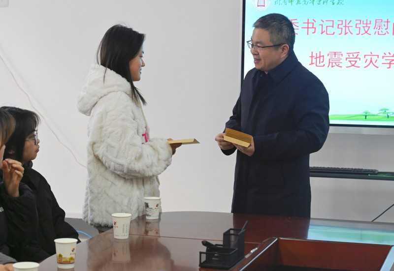 张弢等学校领导和10名积石山县地震受灾学生代表亲切交流,详细了解家庭受灾情况、目前的安置状况以及存在的困难和问题等,并向每位学生发放了500元紧急困难救助金。