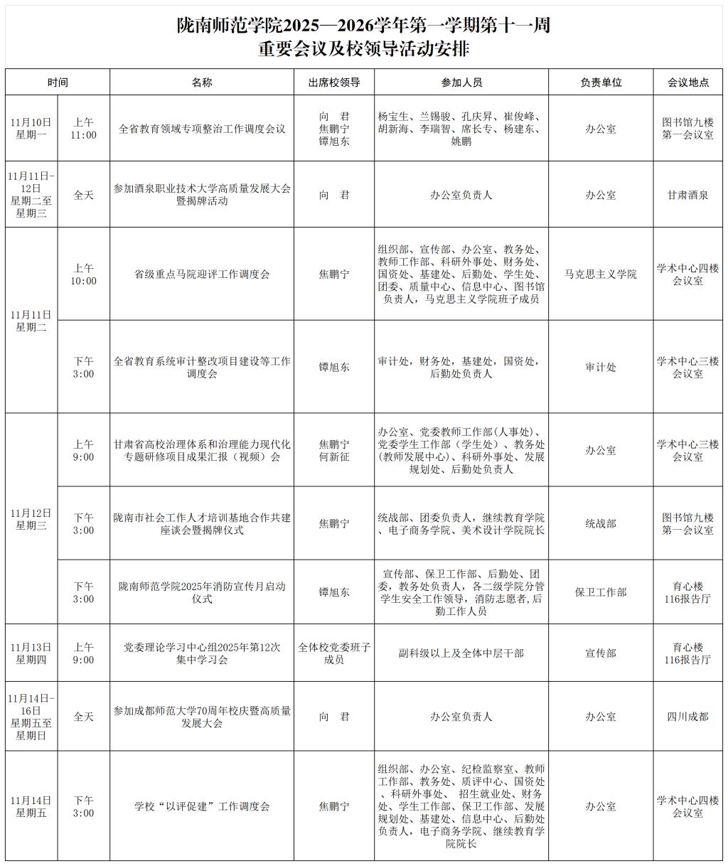 下一条:beat365在线唯一官网2025—2026学年第一学期第十周重要会议及校领导活动安排