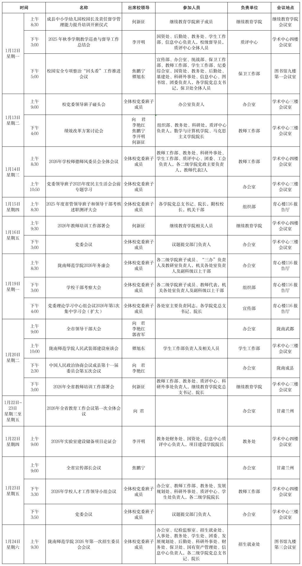 下一条:beat365在线唯一官网2025—2026学年第一学期第十九周重要会议及校领导活动安排