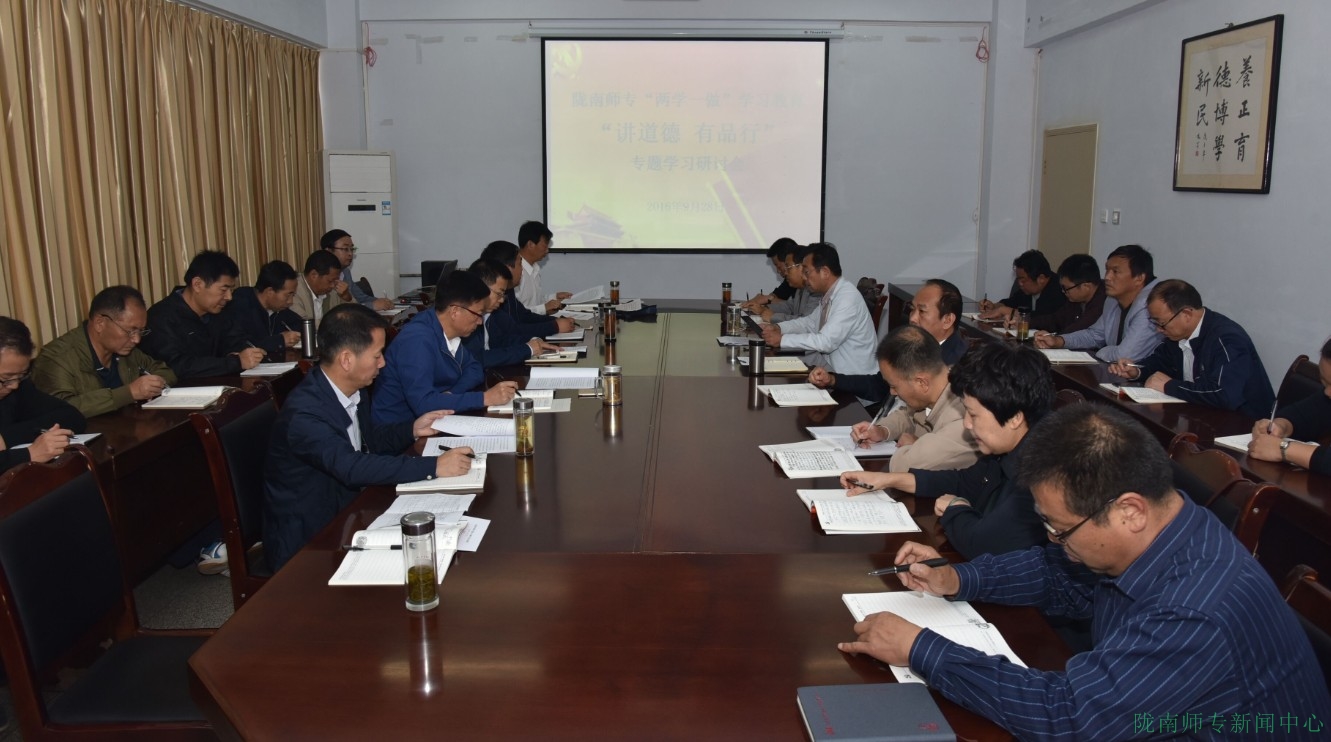 9月28日上午,学校党委中心组召开“两学一做”学习教育“讲道德,有品行”专题学习研讨会。校领导司跃宁、刘先春、王莹成、张建辉、任永峰、王胜青、王录全、张勇参加会议。组织部、宣传统战部、办公室等相关部门负责人、各党总支书记列席会议。研讨会由党委书记司跃宁主持。