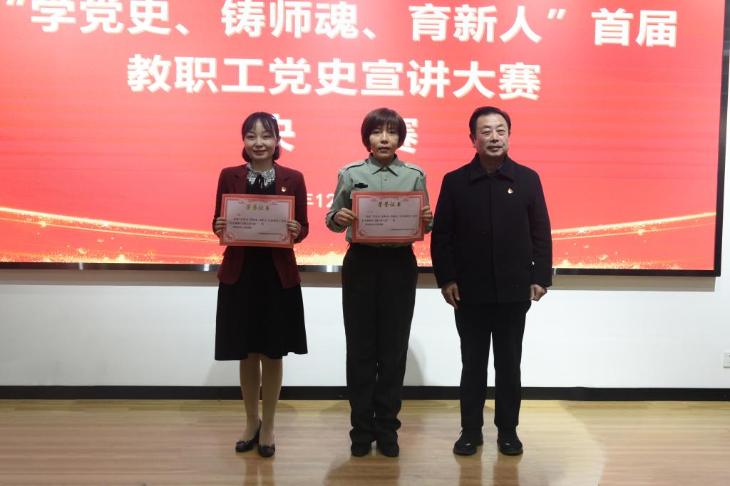 为了更好地学习贯彻十九届六中全会精神,扎实开展党史学习教育,12月14日下午,学校举办“学党史、铸师魂、育新人”首届教职工党史宣讲比赛(决赛)。学校党委副书记王莹成,纪委副书记、综合室主任蔺兴龙,组织人事处处长张益斌、宣传统战部部长石明及部分师生代表观看了比赛。