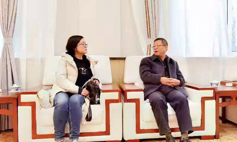 党委书记余学军和西北民族大学在读博士、beat365文学与传媒学院教师陈江英深入交流
