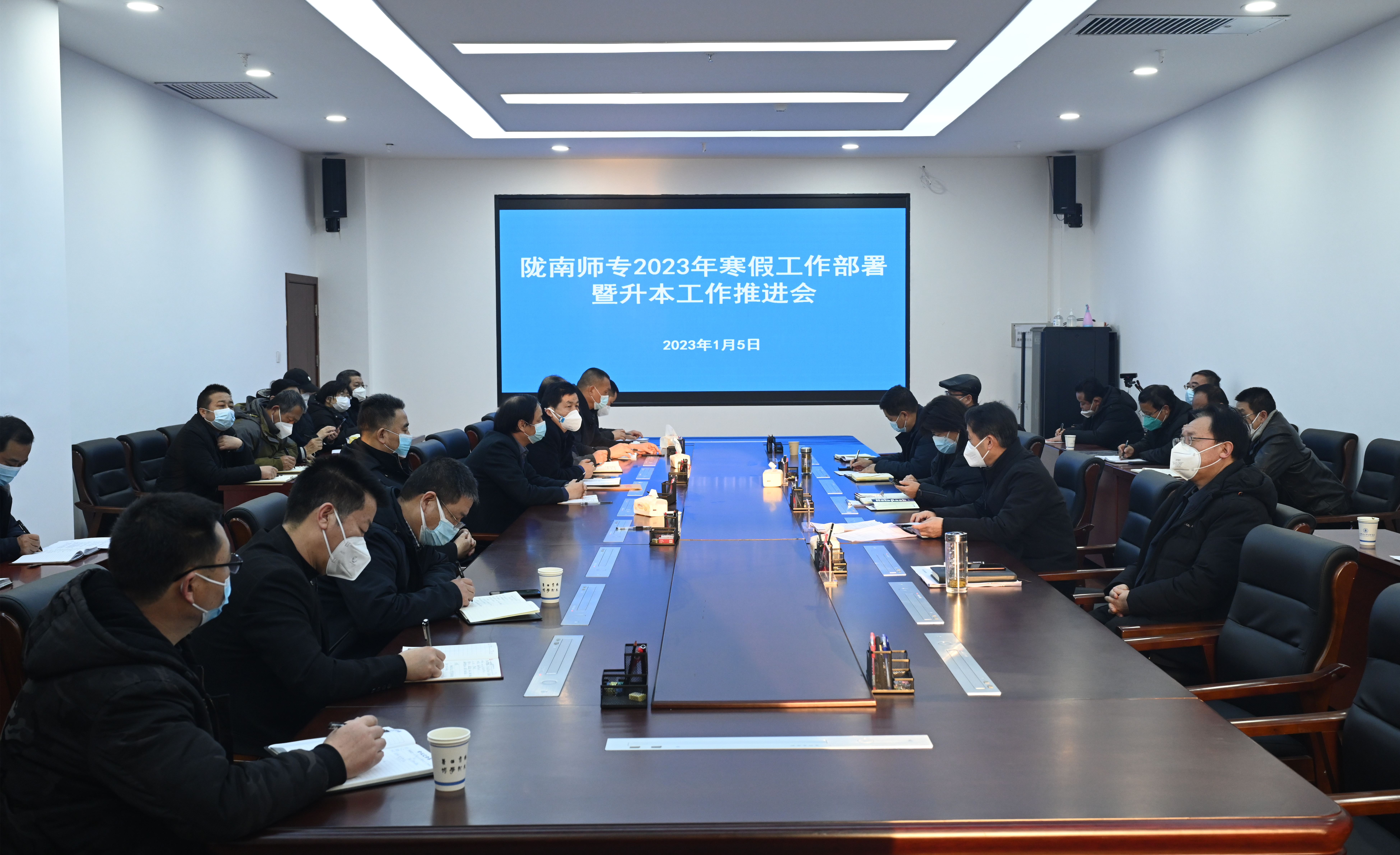 1月5日,学校举行2023年寒假工作部署暨升本工作推进会。校长李艳红,副校长张建辉、任永峰、王胜青,纪委书记、监察专员镡旭东,各学院、部门负责人参加了会议。