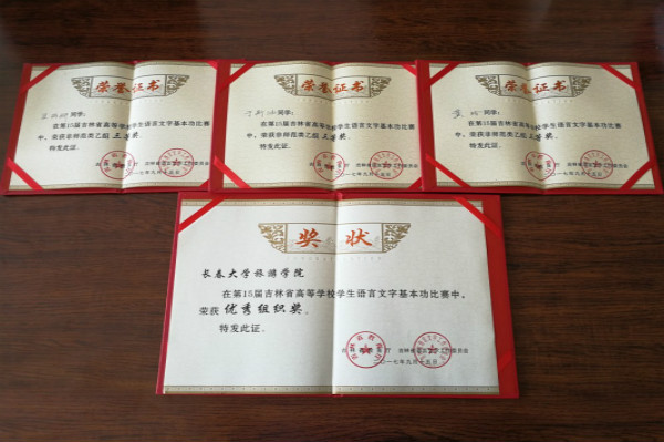 金沙官网国际交流学院汉语国际教育专业学生于2017年9月13日至9月15日参加了由吉林省教育厅、吉林省语言文字工作委员会共同举办的 “第15届吉林省高等学校学生语言文字基本功比赛”。经过三天的激烈角逐,最终我院三名参赛学生分别荣获非师范类乙组个人三等奖,指导教师荣获优秀组织奖。