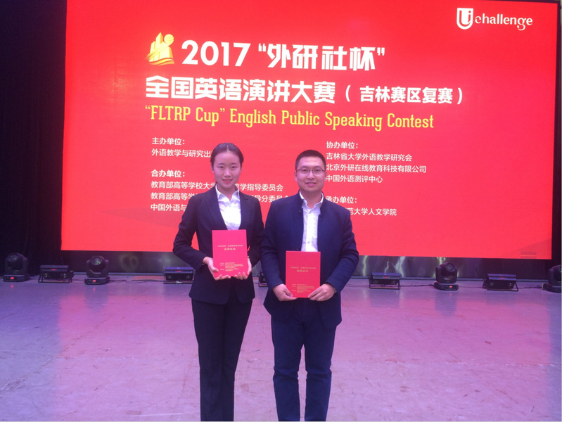 2017“外研社杯”全国英语演讲大赛由教育部高等学校大学外语教学指导委员会、中国外语与教育研究中心、外语教学与研究出版社等多家单位共同举办。来自我省40余所高校的57名选手参加了吉林赛区的比赛,经过定题演讲、即兴演讲、回答评委提问等三个环节的激烈角逐,金沙官网国际交流学院14级王丽妍同学获得二等奖,基础部大学外语教研室教师张宇获“优秀指导教师”称号。