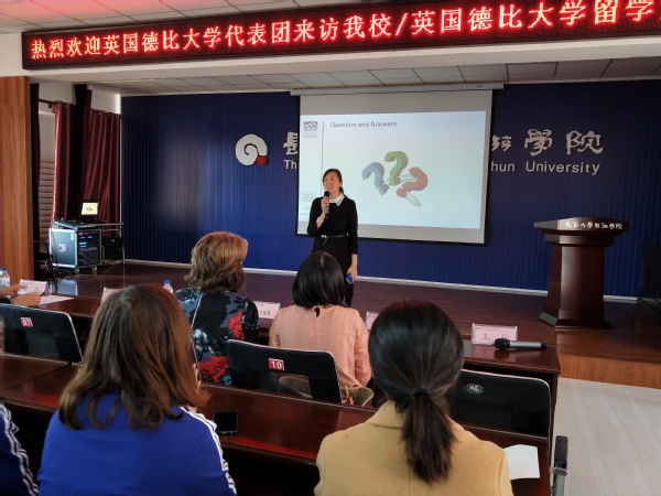 11月1日上午在行政楼三楼报告厅,萨拉院长作为友好合作校校方代表为旅游管理学院及外国语学院学生分别作了专场宣讲会。会上,程越介绍了德比大学简况,希望参会学生能够借助学校国际交流平台走向世界舞台,展现自我风采。随后,李国茹与黄江分别代表旅游管理学院与外国语学院致辞,鼓励学生们珍惜国外交流学习机会,努力成为国际化复合型优秀人才。