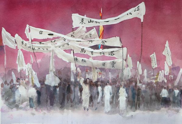 4月26日上午,学校副董事长郑晓明,党委书记张洪昭等校领导到展厅参观学生作品汇报展。学生们以艺术形态的手法表达对五四运动100周年的缅怀,以前辈们坚定的信念、爱国意识、无私奉献的精神为依托,勾画出一幅幅新一代热血青春。校领导对金沙官网学生的画功、作品的思想性、艺术性给予高度评价和赞赏。