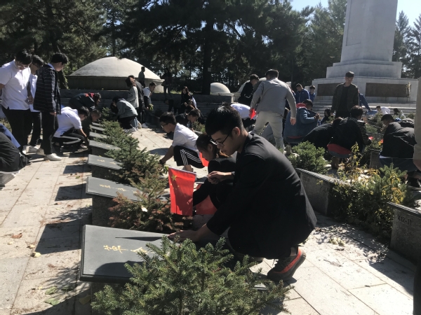 9月18至19日,同学们带着对革命烈士的崇高敬意参观了四保临江战役纪念馆、陈云公园、杨靖宇将军殉国地等爱国教育基地,以现场教学和体验式教学形式开展活动。东北抗联史学者刘贤教授眼含热泪讲解杨靖宇将军宁死不屈、用生命坚守民族大义的英雄事迹,在场的所有师生潸然泪下。在陈云公园,同学们昂扬抖擞的朗诵诗歌《弘扬抗战精神,共筑中国梦》,表达对先烈、对生命的敬畏,现场气氛热烈,掌声不断。