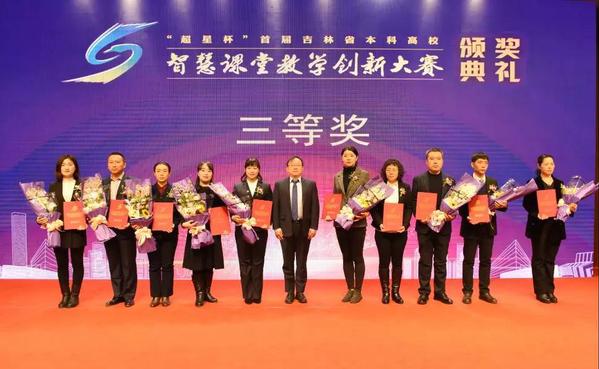 为贯彻落实全国教育大会和新时代全国高等学校本科教育工作会议精神,坚持“以本为本”,推进“四个回归”,以课堂教学改革为突破口,全面提升人才培养质量。吉林省教育厅联合吉林省总工会举办了“超星杯”首届本科高校智慧课堂教学创新大赛。1月5日,大赛颁奖典礼在东北师范大学隆重举行。金沙官网商学院教师王玉华荣获二等奖,旅游管理学院教师马影和基础部教师孙光宇荣获三等奖,马影作为三等奖获奖教师代表上台接受颁奖。