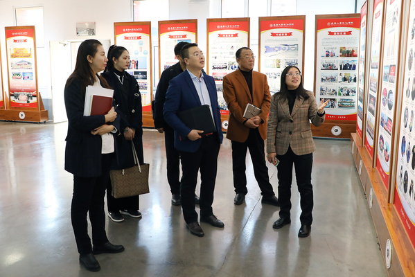会前,在教学楼二楼的“新时代 新长旅”文化展廊,王丹向来宾介绍了学校的发展历程、办学规模、内涵发展、集团化办学与国际化办学、品牌特色等。在筑梦报告厅,来宾在校领导陪同下观看学校宣传片,对金沙官网办学定位、学科发展、应用型人才培养等有了全面的了解。