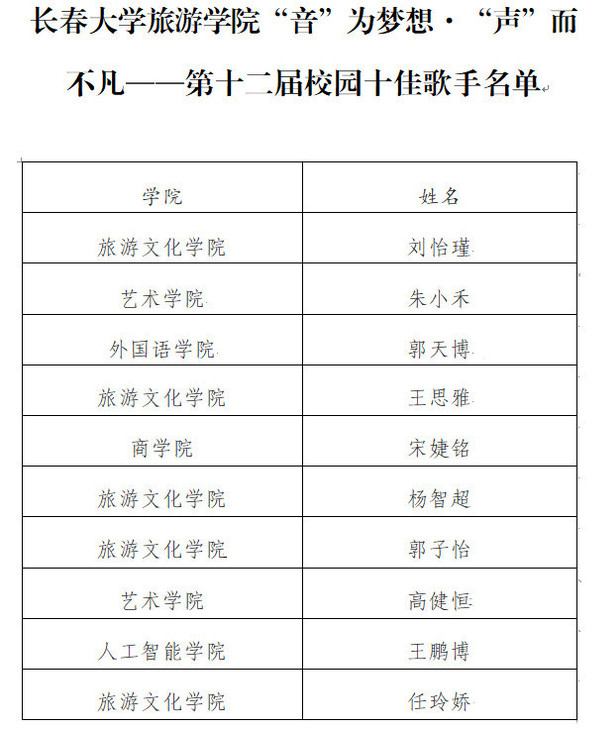 11月27日晚,“音”为梦想·“声”而不凡——第十二届校园十佳歌手大赛决赛在大学生活动中心举行。校团委副书记张帆、各学院党总支书记出席活动。大赛由旅游之音广播站主持人部副部长姜业炜、主持人部干事赵卓主持。
