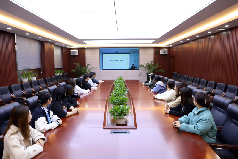 本次培训会由《光明日报》驻吉林记者站负责人任爽主讲,她从新闻的定义、特点、写作技巧、文章架构等方面进行了生动详细地讲解。着重强调了新闻采访的重要性,从标题拟订、新闻挖掘,如何把握新闻的写作技巧等方面进行了深入讲解。她结合自己的工作经历,引用“挺拔”的跪姿、腾个地方给百姓唠嗑、镌刻于时代的赤子之心等采访案例图文并茂、生动形象地对大家进行了细致的、具有针对性的培训。针对高校新闻报道特点,重点讲述了学生记者在采写新闻中如何发现新闻,找好切入点,用最有说服力的视角发现真善美。