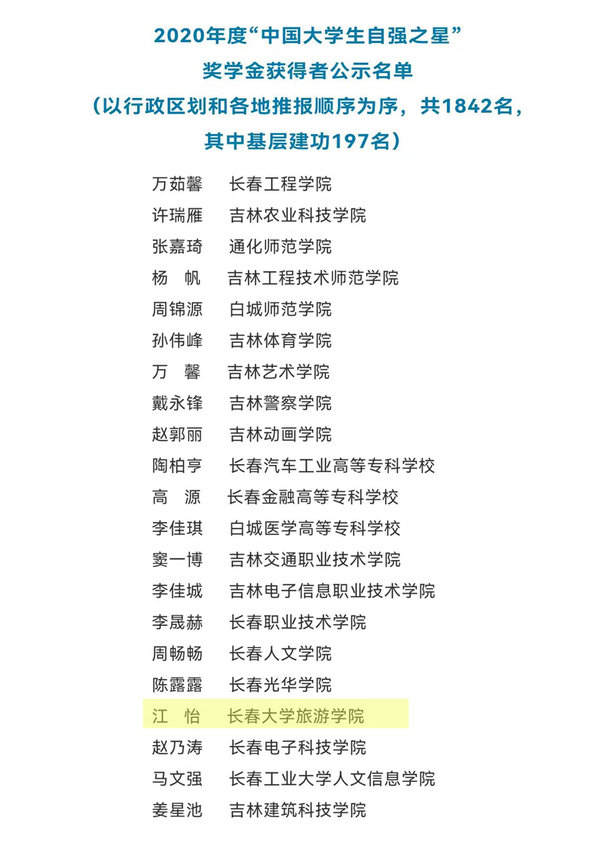 近日,由共青团中央、全国学联,中国青年报社、新东方教育科技集团联合开展的2020年度“中国大学生自强之星”评选结果揭晓,金沙官网外国语学院学生江怡,荣获2020年度“中国大学生自强之星”荣誉称号并获得“中国大学生新东方自强奖学金”2000元。该同学是也是继学校2019年后又一位获此殊荣的学生。