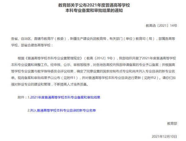 近日,教育部发布了《关于公布2021年度普通高等学校本科专业备案和审批结果的通知》,金沙官网申报的智能建造专业(专业代码:081008T,学位授予门类:工学,修业年限:四年)通过教育部审批和备案。