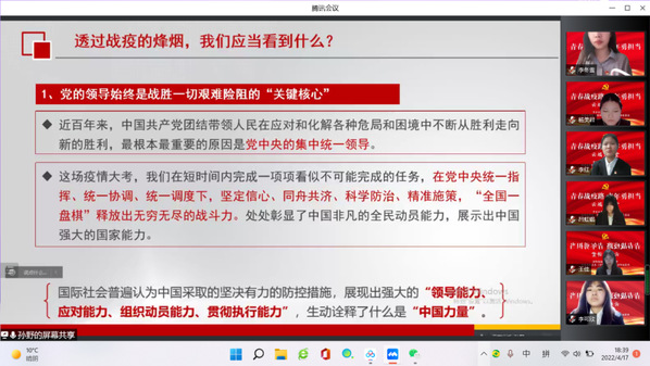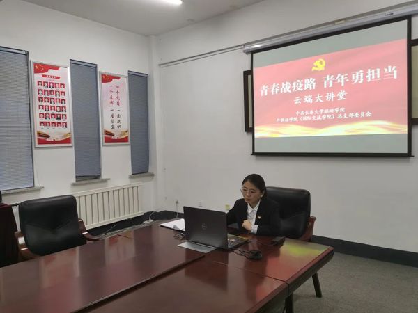 为深入学习贯彻习近平总书记重要指示批示精神,全面贯彻省疫情防控工作领导小组部署要求,积极响应学校党委号召,提升学院党组织组织力、战斗力,引导广大师生从抗疫的生动实践中坚定信念,汲取力量,同频共振,4月17日晚,外国语学院、国际交流学院开展“青春战疫路、青年勇担当”云端大讲堂活动,此次大讲堂由外国语学院(国际交流学院)党总支书记孙野主讲,全体辅导员、学生党员、学团组织学生干部以及班级主要学生干部等240余人参加此次活动。