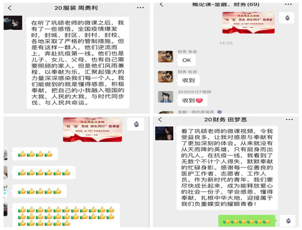 战“疫”弘扬感恩情怀,青春彰显奉献责任。不论是“三尺讲台”还是战“疫”一线,马克思主义学院教师始终以实际行动践行初心使命,为同学们上好每一堂感恩教育思政课。