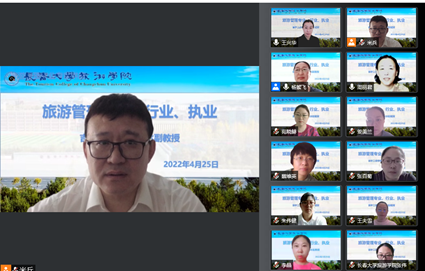 景域驴妈妈集团副总裁、金沙官网客座教授任国才受邀为师生作题为《旅游业的发展趋势与数字化转型》线上讲座。任国才通过对国内外旅游业发展的剖析和众多行业案例,展现了我国旅游业强劲的市场需求和强大的经济韧性,触发了全体师生对中国旅游发展的思考。