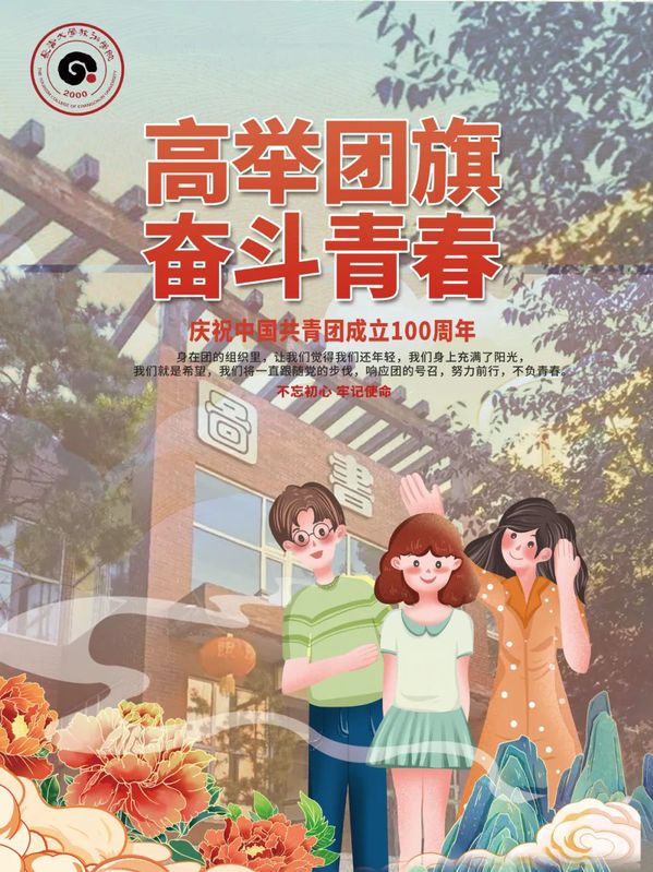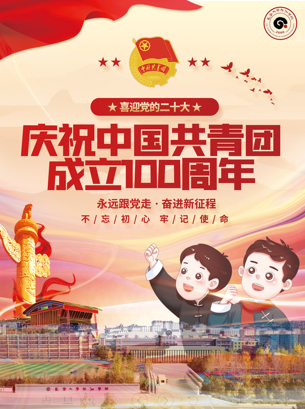 海报设计内容将学校特色景观、建筑物、文化标识等元素融入庆祝中国共青团成立100周年中,引导同学们发挥自己的专业特长,利用形象生动的画面展现中国共青团百年历史,用华丽的视觉效果描绘中国共青团的百年光辉岁月。接下来跟着小编一起欣赏艺术学院海报设计作品的第一期吧!