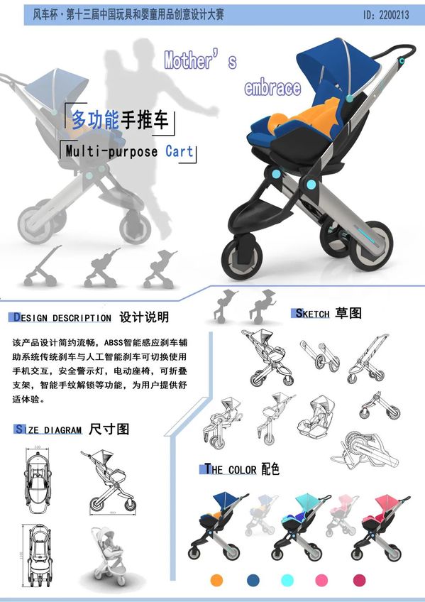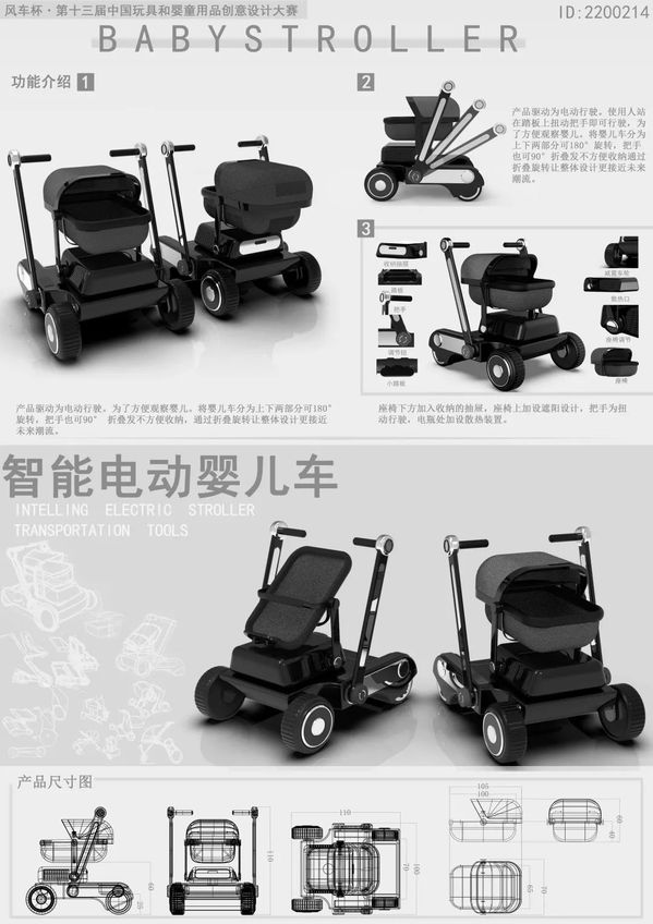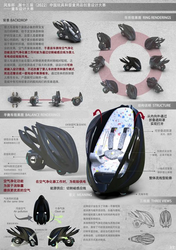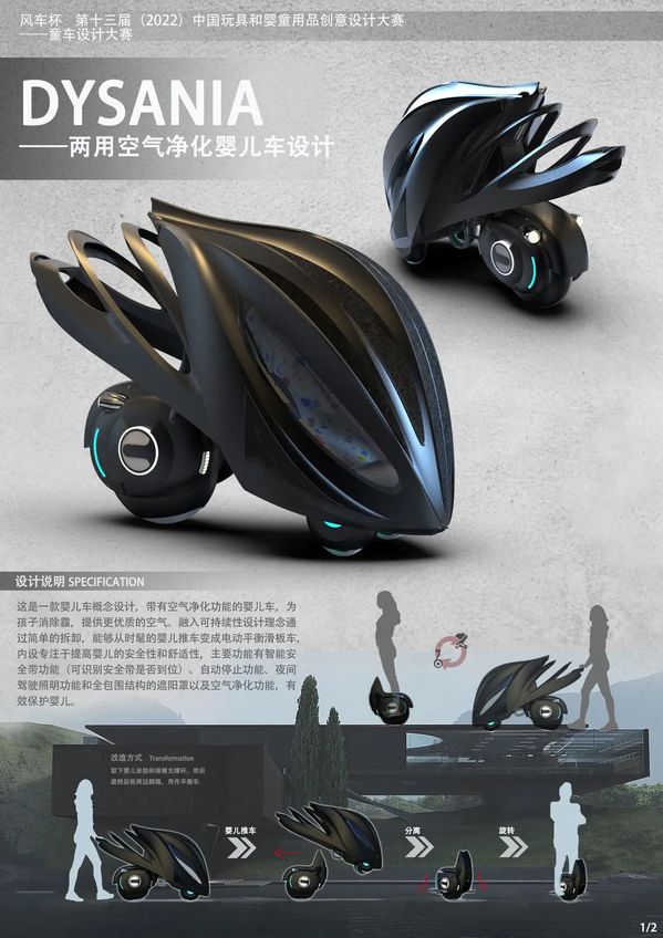 设计理念中结合了智能性和可持续性,改进了婴儿车的操作模式,还集成了平衡踏板车功能。