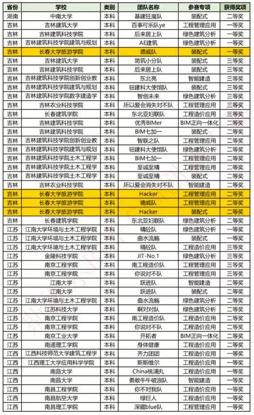 第十三届全国高等院校学生“斯维尔杯”BIM-CIM创新大赛获奖名单