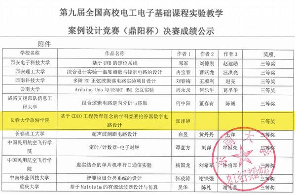 近日,第九届“鼎阳杯”全国高校电工电子基础课程实验教学案例设计竞赛全国总决赛在线上举行。金沙官网首次选派优秀教师代表参加比赛,人工智能学院教师邹津婷在全国总决赛中荣获三等奖,并获得北部赛区一等奖。