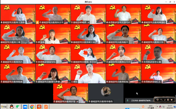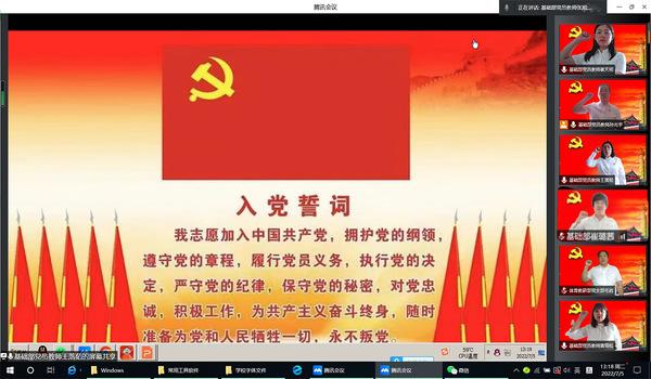 为庆祝中国共产党成立101周年,7月5日,基础部党总支开展“重温入党誓词 感悟初心使命”庆七一主题党日活动,用铿锵誓言向党的101岁生日献礼!基础部党总支21名党员参加活动,活动由基础部党总支副书记王落茹主持。
