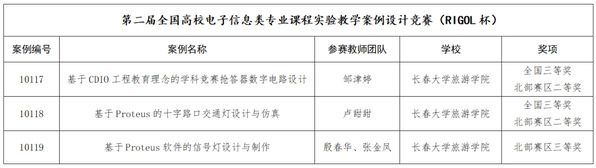 第二届全国高校电子信息类专业课程实验教学案例设计竞赛由教育部高等学校电子信息类专业教学指导委员会、国家级实验教学示范中心联席会电子学科组主办,全国决赛由北京航空航天大学承办。本次比赛通过腾讯会议方式在线上举行,来自全国的122所高校、151个实验案例,参加了决赛的角逐。金沙官网邹津婷教师团队的“基于CDIO工程教育理念的学科竞赛抢答器数字电路设计”案例和卢甜甜教师团队的“基于Proteus的十字路口交通灯设计与仿真”案例分别荣获全国决赛三等奖和北部赛区二等奖;殷春华教师团队的“基于Proteus软件的信号灯设计与制作”案例荣获北部赛区三等奖。