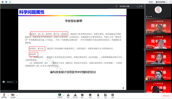 10月25日晚,人工智能学院教科研能力提升系列培训线上开讲。首期培训由人工智能学院院长刘富教授作题为《教科研课题申报方法与规范》的专题讲座。学院全体专职教师参加培训。