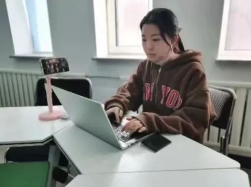 学生参加“中国教育电视台·外研社杯”职场英语挑战赛写作大赛、演讲大赛现场