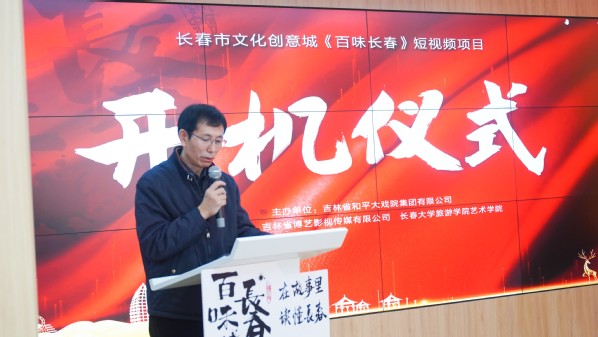 为落实全省“一主六双”高质量发展战略以及长春市委市政府提出建设长春文化创意城的宏伟构想,11月4日,学校艺术学院与吉林省和平大戏院集团有限公司、吉林省博艺影视传媒有限公司联合拍摄的百集短视频《百味长春》项目,在朝阳区新业态新就业群体党群服务中心举行开机仪式。长春市朝阳区文化和旅游局党组书记、局长田秋,长春市委组织部组织四处李世鹏,朝阳区新业态新就业群体党群服务中心主任张淑月,朝阳区旅游管理中心副主任毕辉,吉林省和平大戏院集团总裁韦素芳,吉林省和平大戏院集团党支部书记、副总裁邢岩,吉林省和平大戏院集团副总裁何乐,学校艺术学院院长孙虎鸣、院长助理崔发朋及全体演职人员出席仪式。仪式由邢岩主持。