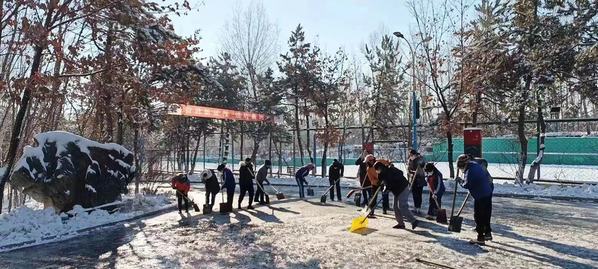 全体保洁员不辞辛苦、顶风冒雪用力挥动着手中的扫帚和铲锹,经过4个小时连续奋战,行政楼四周和教学楼门前的积雪全部清理完毕,校园主干道路清理出一条条小路供师生通行,为防止雪天路滑,校园中的几处陡坡路段的冰雪做了重点彻底清理,校园道路恢复了畅通,为师生安全出行提供了保障。
