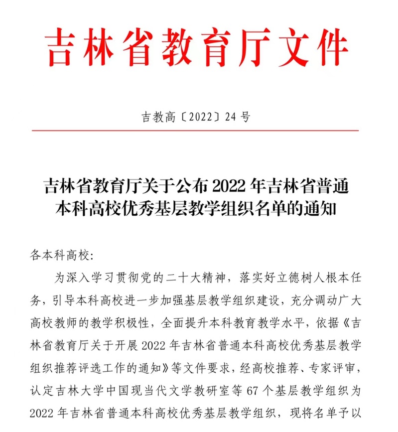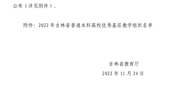 吉林省教育厅《关于公布2022年吉林省普通本科高校优秀基层教学组织名单的通知》