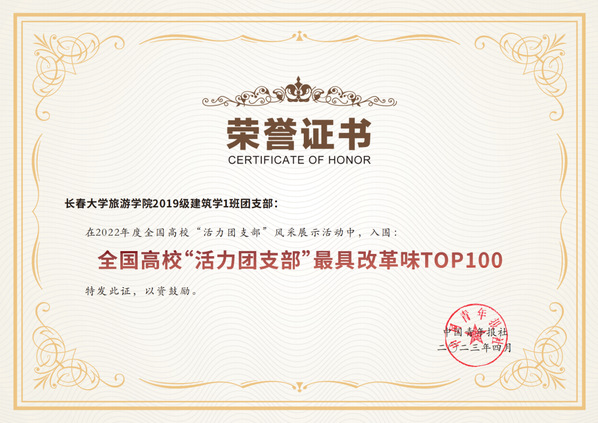 近日,团中央基层建设部指导中国青年报社开展2022年度高校“活力团支部”风采展示活动。学校工学院2019级建筑学1班团支部在此次活动中荣获吉林省“最具改革味团支部”一等奖,并成功入围全国高校“活力团支部”最具改革味TOP100。